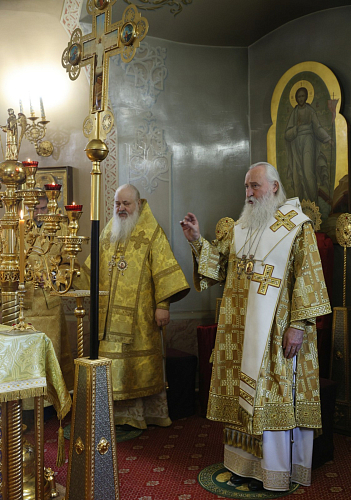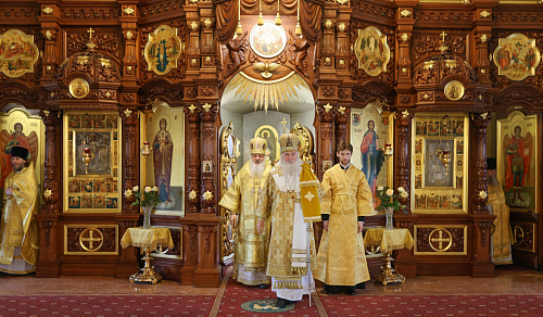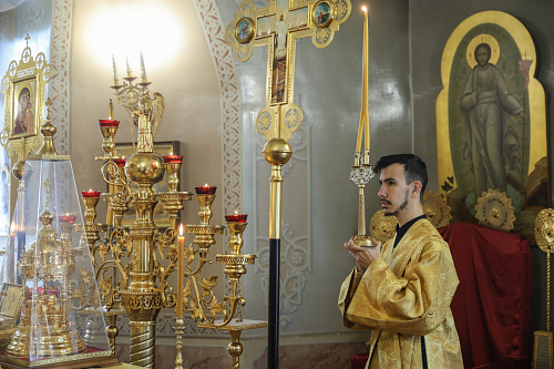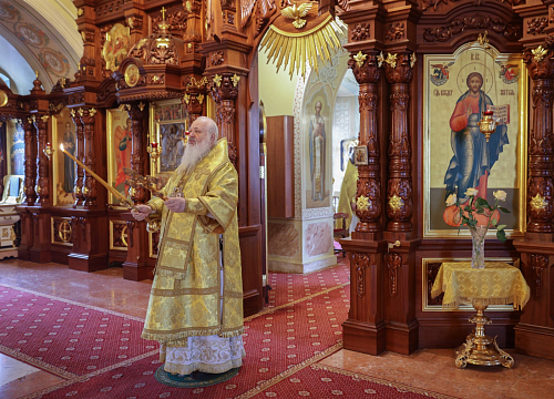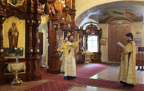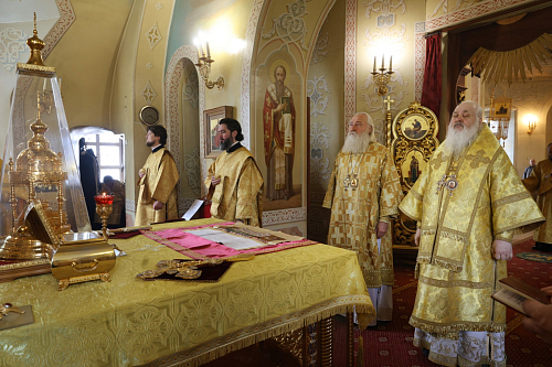 Его Высокопреосвященству сослужили наместник Екатерининского монастыря епископ Видновский Тихон, настоятель храма в честь святого великомученика Георгия Победоносца в г. Видное протоиерей Михаил Егоров, братия обители в священном сане.