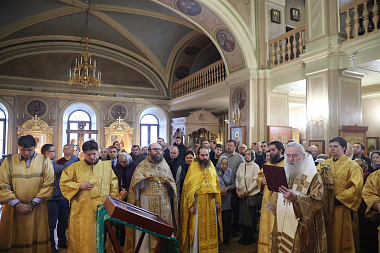 Его Высокопреосвященству сослужили клирики монастыря.