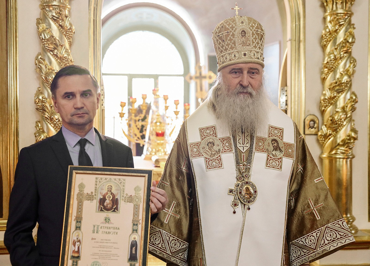 По окончании Литургии был зачитан Патриарший указ о награждении главы администрации поселения Новофедоровское города Москвы А.В. Шутикова – во внимание к помощи Троице-Одигитриевскому ставропигиальному женскому монастырю Зосимова пустынь – Патриаршей грамоты.