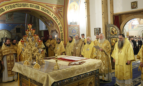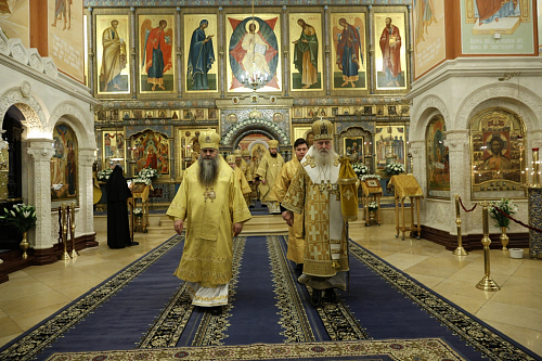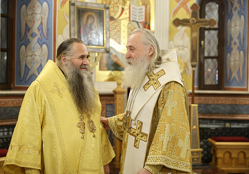 Его Высокопреосвященству сослужили председатель Комиссии по организации жизни монастырей и монашества Межсоборного присутствия Русской Православной Церкви митрополит Нижегородский и Арзамасский Георгий, митрополит Саранский и Мордовский Зиновий, митрополит Воронежский и Лискинский Леонтий, епископ Выксунский и Павловский Гедеон, епископ Ардатовский и Атяшевский Мелетий, епископ Можайский Иосиф, епископ Урюпинский и Новоаннинский Елисей, епископ Россошанский и Острогожский Дионисий, епископ Борисоглебский и Бутурлиновский Сергий.