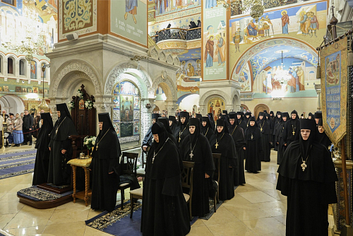 На Божественной литургии молились заместитель председателя Синодального отдела по монастырям и монашеству, настоятельница Зачатьевского ставропигиального женского монастыря игумения Иулиания (Каледа) с сестрами обители, а также участники XXХIII Международных Рождественских чтений – представители монастырей Русской Православной Церкви, в том числе Нижегородской митрополии.
