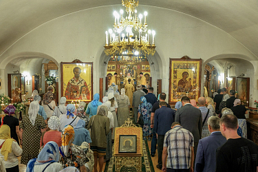 За Литургией молились настоятельница Свято-Троицкого Александро-Невского ставропигиального женского монастыря игумения Антония (Минина) с сестрами, настоятельница Никольского Шостьенского ставропигиального женского монастыря игумения Неонилла (Фролова) с сестрами, насельники и прихожане обители.
