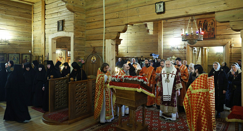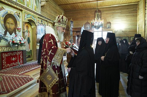 За Литургией молились заместитель председателя Синодального отдела по монастырям и монашеству, настоятельница Зачатьевского ставропигиального монастыря игумения Иулиания (Каледа) с сестрами, настоятельница Бывалинского Никитского женского монастыря игумения Капитолина (Филиппенко), прихожане и гости обители.