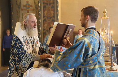 После Херувимской песни владыка Феогност совершил рукоположение насельника Николо-Угрешского ставропигиального мужского монастыря иеродиакона Макария (Умарова) во иеромонаха.