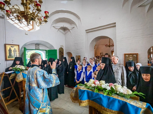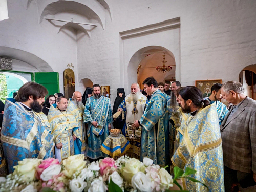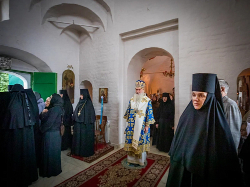 Его Высокопреосвященству сослужили клирики обители.