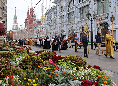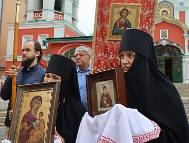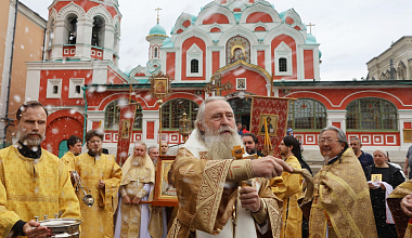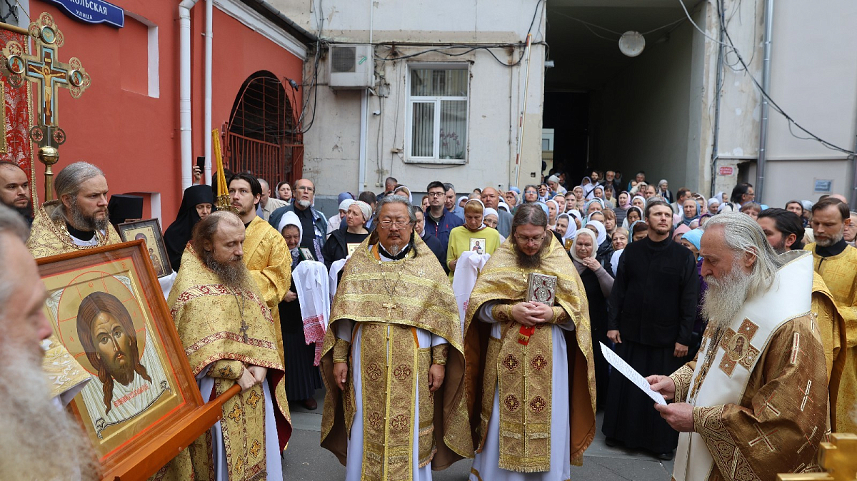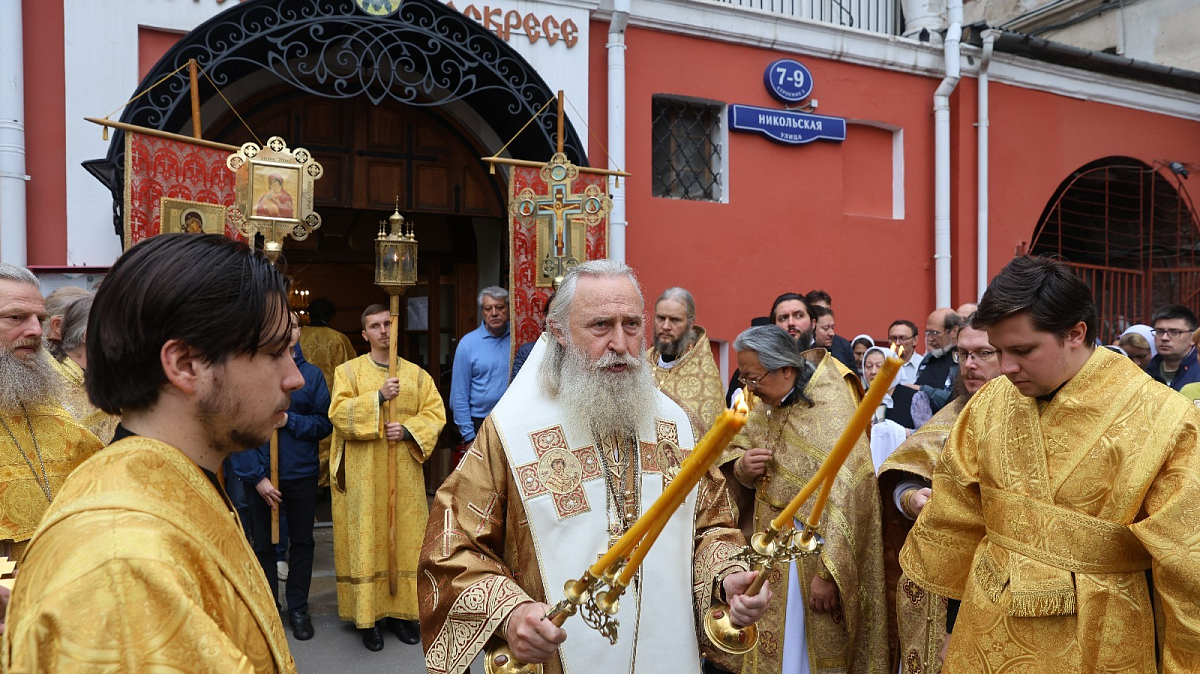 По заамвонной молитве состоялся крестный ход. Торжественная процессия прошла от Заиконоспасского монастыря по Никольской улице к месту, где находился Николо-Греческий монастырь, затем к Воскресенским воротам, далее к Казанскому собору на Красной площади и возвратилась в Заиконоспасскую обитель.