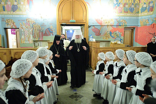 Настоятельница Патриаршего подворья игумения Феофания провела для Его Высокопреосвященства экскурсию по всем зданиям. Владыка осмотрел детский сад «Покров», котельную, посетил уроки в православной гимназии. Учащиеся продемонстрировали свои умения на уроках труда, физики, химии. Затем гимназисты пригласили митрополита Феогноста на небольшой концерт, где исполнили патриотические и духовные песни, несколько инструментальных произведений.