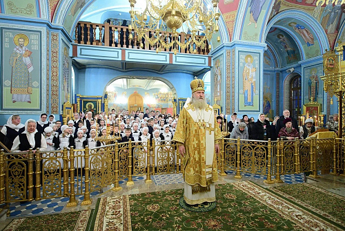 «…Есть ещё одна очень важная добродетель, без которой нельзя жить на этом свете, – это благодарность. Великая сила в благодарности, когда мы благодарим Бога и за радости, и за скорби. Когда мы всегда Ему благодарны, потому что воистину: Бог что ни делает, Он делает всё к лучшему. Очень важно еще благодарить своих родителей, учителей, наставников, поваров. Всегда и за всё благодарить. Смирение, терпение, молитва и труд всё перетерпят и всё перетрут, а за благодарность человеку вернется всё сторицей. Всех поздравляю с праздником!»