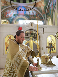 По окончании Литургии Его Высокопреосвященство митрополит Феогност зачитал поздравление Святейшего Патриарха Московского и всея Руси Кирилла отцу Иоанну.