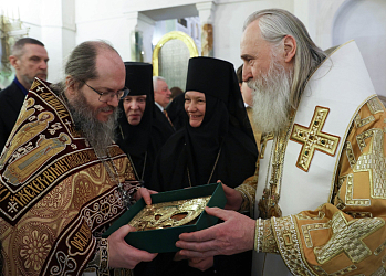 Все присутствующие на богослужении пропели многолетие. В алтаре владыка поздравил юбиляра от Синодального отдела по монастырям и монашеству и подарил икону – Смоленский образ Божией Матери, а также несколько томов книжной серии «Воспоминания соловецких узников 1923–1939 гг.» – проекта Информационно-издательского отдела Соловецкого ставропигиального монастыря.