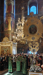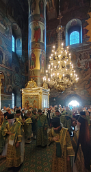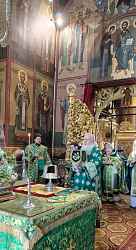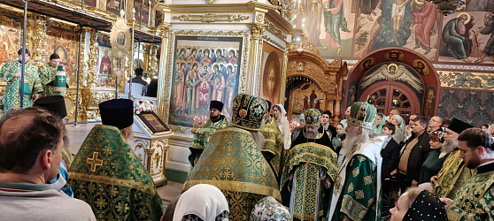 В сам день праздника в Успенском соборе монастыря председатель Синодального отдела по монастырям и монашеству, наместник Донского ставропигиального мужского монастыря митрополит Каширский Феогност совершил Божественную литургию.