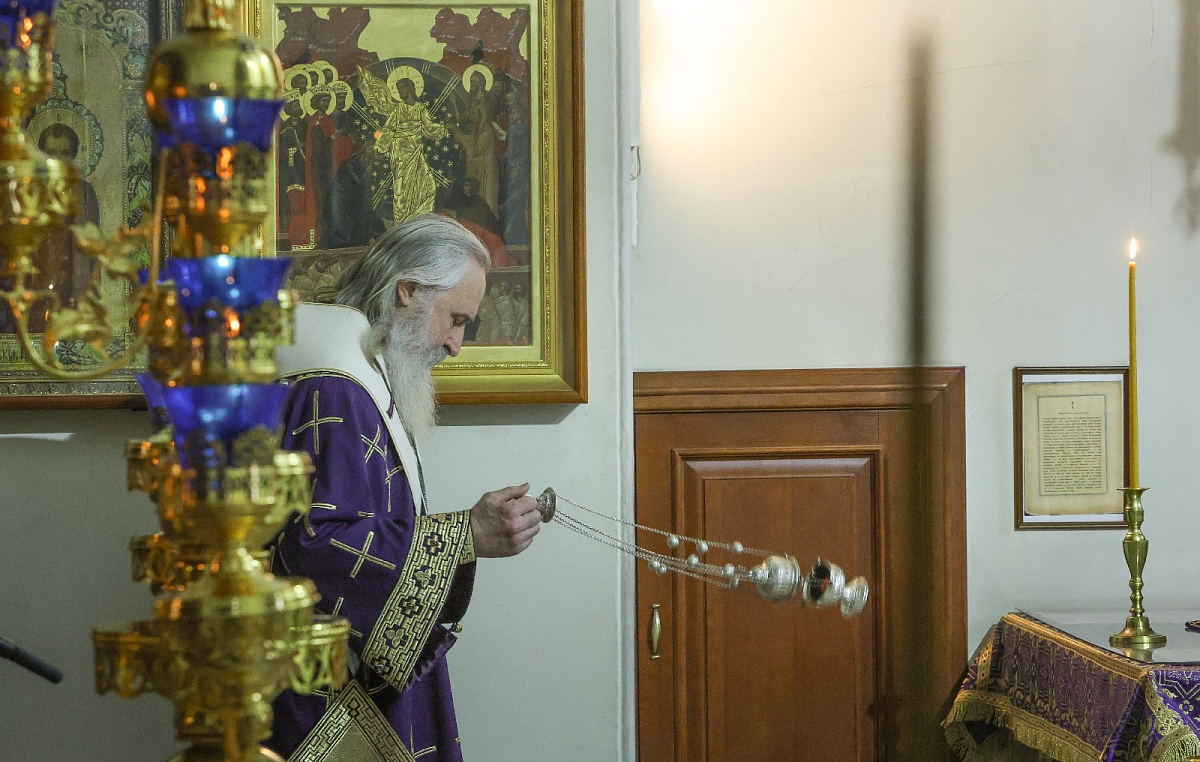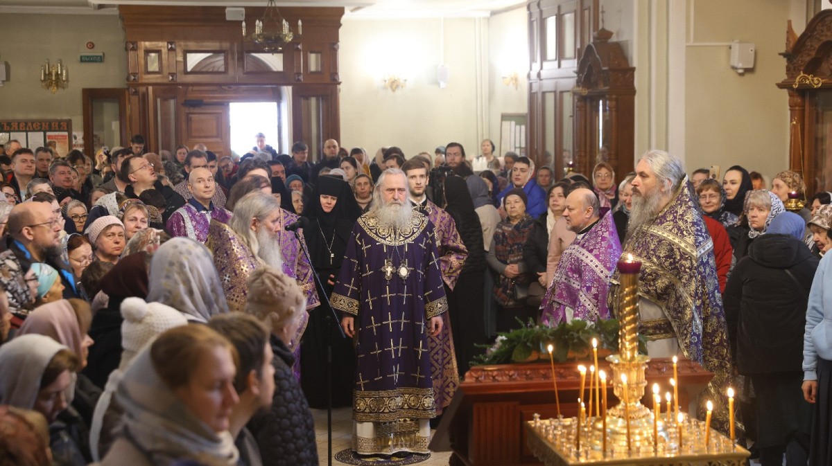 Его Высокопреосвященству в Алексеевском храме сослужили старший священник и духовник монастыря протоиерей Артемий Владимиров, клирики обители.