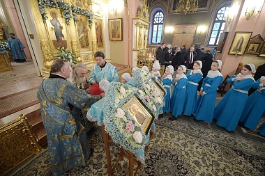 За богослужением молились настоятельница монастыря игумения Феофания (Мискина) с сестрами, настоятельница Введенского Толгского монастыря в Ярославле игумения Варвара (Третьяк), воспитанницы монастырского детского приюта, прихожане и паломники.