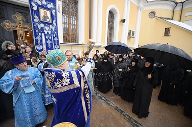 По окончании Литургии состоялся молебен и крестный ход вокруг Воскресенского собора обители. У мощей блаженной Матроны Московской владыка Феогност прочитал молитву праведной старице. На протяжении всего крестного хода духовенство окропляло многочисленных верующих святой водой.