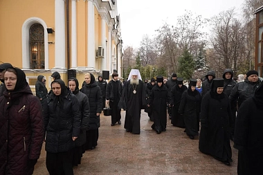 По прибытии в обитель митрополит Феогност поклонился честным мощам блаженной Матроны Московской.