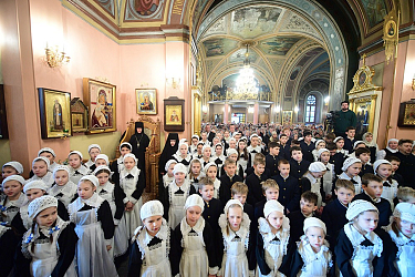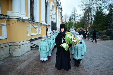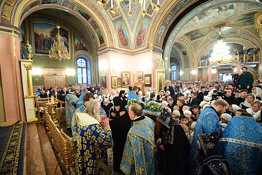 За богослужением молились настоятельница монастыря игумения Феофания (Мискина) с сестрами, воспитанницы монастырского детского приюта, прихожане и паломники.