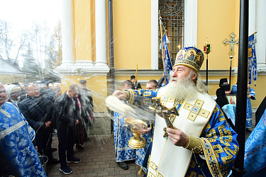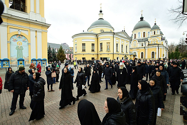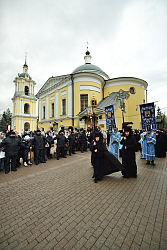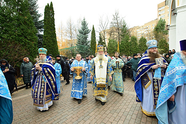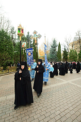 По окончании Литургии состоялся молебен и крестный ход вокруг Воскресенского собора обители. У мощей блаженной Матроны Московской митрополит Феогност прочитал молитву праведной старице. На протяжении всего крестного хода духовенство окропляло многочисленных верующих святой водой.