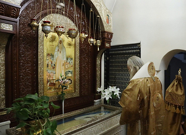 По окончании Литургии митрополит Феогност прочитал молитву у раки преподобномученицы Елисаветы и обратился к собравшимся с архипастырским словом.