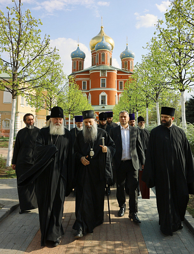 Святейший Патриарх Сербский Порфирий 23 апреля посетил Донской ставропигиальный мужской монастырь г. Москвы. Его Святейшество сопровождали члены делегации Сербской Православной Церкви, прибывшие в Москву.
