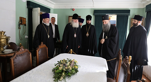 Далее Патриарх и сопровождающие его лица посетили мемориальный музей святителя Тихона в Донском монастыре. Пояснения Святейшему Патриарху Порфирию при осмотре музея давал митрополит Каширский Феогност.