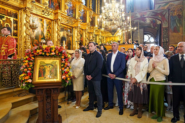 На богослужении присутствовали: председатель Комитета Государственной Думы Федерального Собрания Российской Федерации по строительству и жилищно-коммунальному хозяйству, ответственный секретарь Попечительского совета Фонда по сохранению, воссозданию исторического облика и развитию г. Сергиева Посада Московской области С.А. Пахомов; Чрезвычайный и Полномочный посол Республики Сербия в Российской Федерации Момчило Бабич; глава Сергиево-Посадского городского округа О.В. Ероханова; и.о. генерального директора ХПП «Софрино» В.А. Левин; руководитель ювелирно-художественной мастерской «Апостол» И.С. Харьков; сотрудники Посольства Сербии в России.