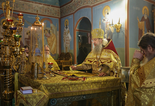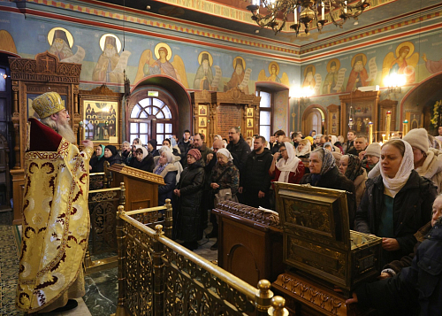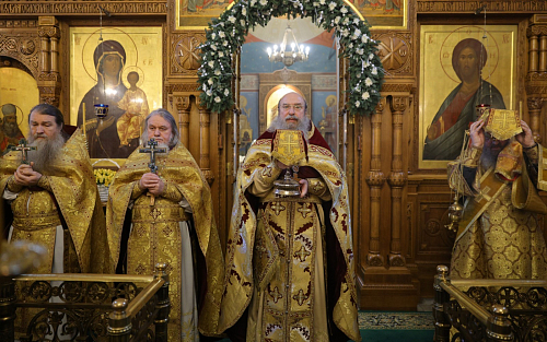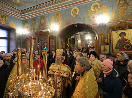 В храме Покрова Пресвятой Богородицы накануне этой памятной даты состоялось торжественное всенощное бдение, которое возглавил архимандрит Мелхиседек.