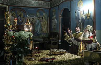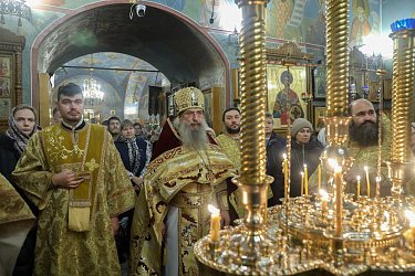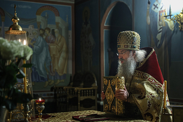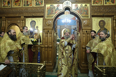 Архимандриту Мелхиседеку сослужили братия обители в священном сане, клирики храма.