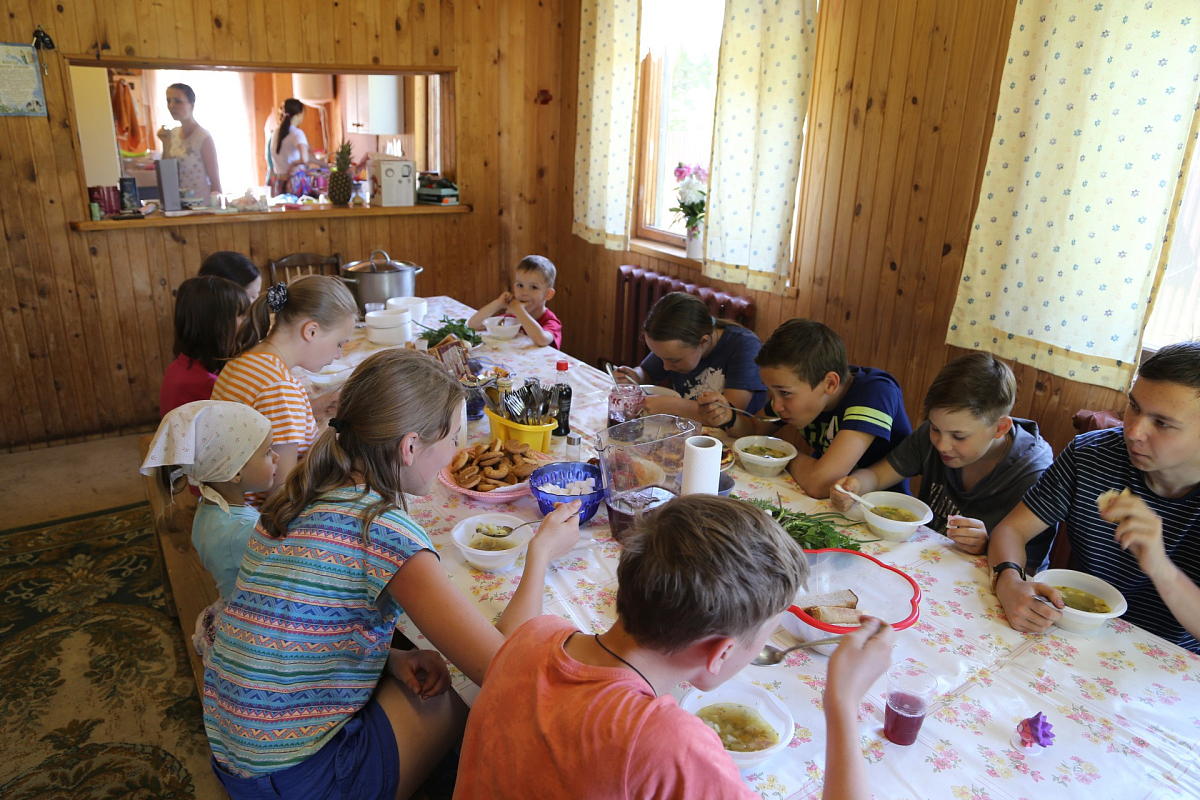 Летний семейный лагерь при обители действует уже восьмой год. Взрослые и дети, всего около 30 человек, активно участвовали в хозяйственных работах. Женщины трудились на монастырских огородах. Мужчины меняли пришедшие в негодность полы в здании летнего лагеря.