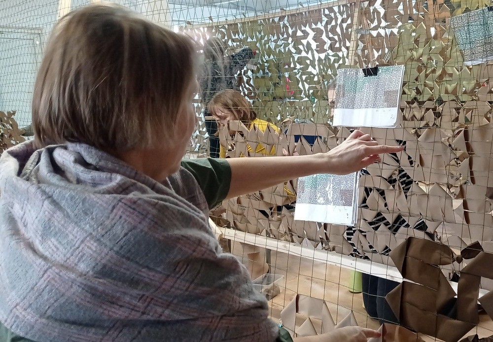 Маскировочная сеть – это возможность спасти чью-то жизнь, укрыть от врага раненого бойца, чтобы он мог вернуться домой живым. Процесс изготовления маскировочных сетей сложен и долог: разрезанные определенным способом ленты вручную навязываются на сеть хаотичным, «природным» образом. Площадь, которую надо покрыть рисунком, весьма значительная.