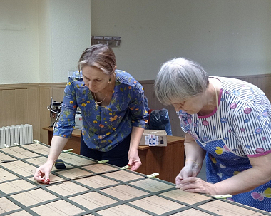 Пошивочный цех находится недалеко от Валаамского подворья, работает без выходных, желающие могут присоединиться в любое удобное время.