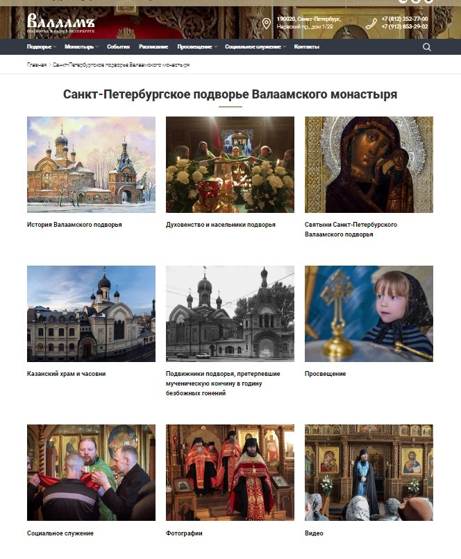 На странице сайта вы узнаете об истории и сегодняшнем дне Валаамского монастыря и его подворья в Северной столице, познакомитесь с новостями и расписаниями занятий, действующих при подворье иконописной мастерской для взрослых и детей, киноклуба, хора прихожан, театральной студии, детской воскресной школы и духовно-просветительского лектория для взрослых.