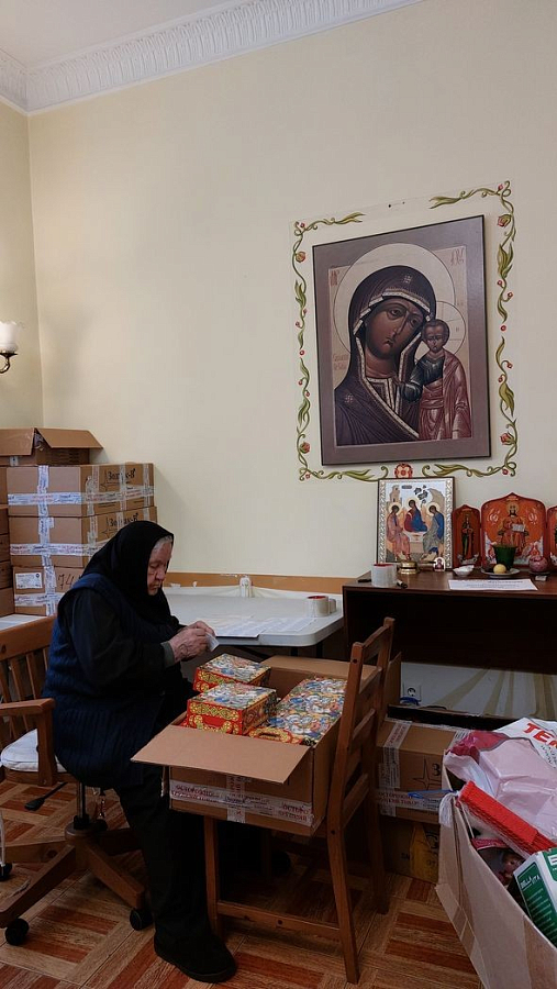 В дни, когда Святая Церковь радуется о воплощении и явлении миру Сына Божия, сестры Кресто-Воздвиженского Иерусалимского ставропигиального женского монастыря готовят подарки для детей и воинов Донбасса.