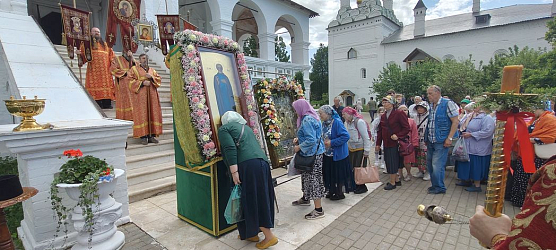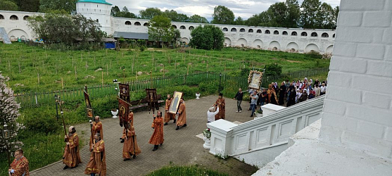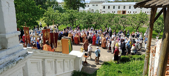 После Божественной литургии в Введенском храме крестный ход направился в монастырь, где возле Святых ворот чтимый образ святителя Николая встречали с иконой преподобного Иосифа Волоцкого наместник Иосифо-Волоцкого монастыря архимандрит Сергий (Воронков) с братией и многочисленные паломники.
