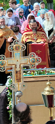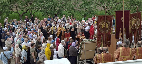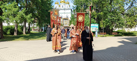 Возле Успенского собора архимандрит Сергий и настоятель Введенского храма протоиерей Константин Попов отслужили молебен с пением акафиста святителю Николаю. Богомольцы поклонились чтимым иконам, после чего крестный ход направился обратно в Спирово.