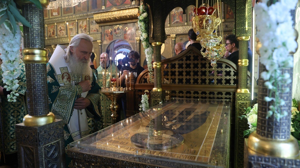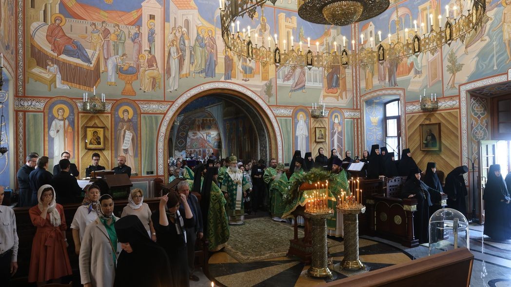 Позднюю Божественную литургию в Троицком храме монастыря возглавил председатель Синодального отдела по монастырям и монашеству, наместник Донского ставропигиального мужского монастыря митрополит Каширский Феогност.
