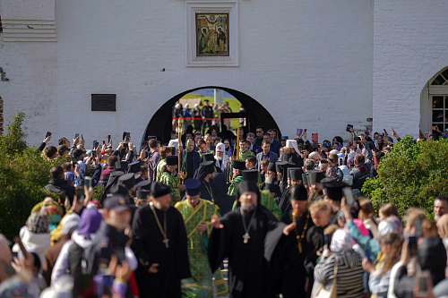 Затем Святейший Патриарх Кирилл обратился со словом к архипастырям, насельникам монастыря и паломникам:
