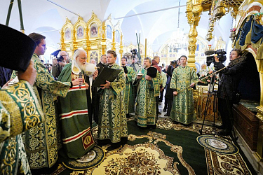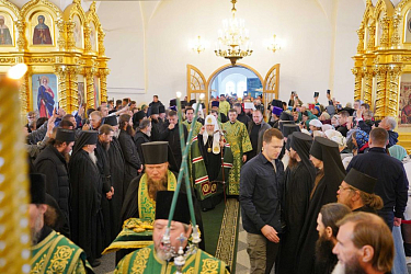 Из аэропорта Святейший Патриарх Кирилл направился в Соловецкий монастырь. В Троицком соборе Соловецкой обители Святейшего Патриарха встречали: заместитель председателя Правительства Российской Федерации, сопредседатель Попечительского совета Фонда по сохранению и развитию Соловецкого архипелага Д.Н. Чернышенко, губернатор Санкт-Петербурга А.Д. Беглов, первый заместитель министра культуры РФ С.Г. Обрывалин, председатель Совета Фонда по сохранению и развитию Соловецкого архипелага А.В. Гуц; братия обители.