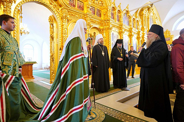 Святейший Владыка поклонился мощам преподобных Зосимы, Савватия и Германа Соловецких.