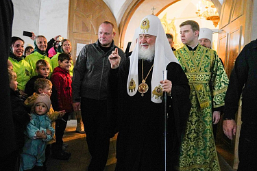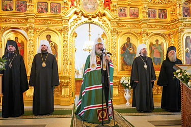 Затем Святейший Патриарх Кирилл обратился со словом к архипастырям, насельникам монастыря и паломникам: