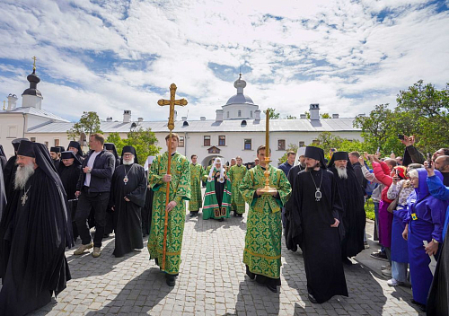 Святейшего Владыку приветствовал наместник Валаамского монастыря епископ Троицкий Панкратий.
