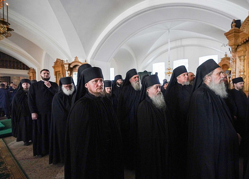 Хотел бы сердечно поблагодарить Вас и всю братию за труды, которые здесь совершаются. В первую очередь, конечно, духовные труды, а в центре этих трудов — молитва. И не только за себя, хотя, конечно, и о своих гресех и невежествиях мы молимся, но очень важна молитва и за тех, кто просит о них помолиться. Вот монастыри и были всегда такими центрами, где совершался духовный подвиг, направленный на облегчение духовных, а иногда и физических недугов тех, кто просит о молитве. И я знаю, что абсолютное большинство монашествующих в наших монастырях искренне, с пониманием долга пред Богом и пред теми, кто просит их о молитвах, подвизаются на этом поприще. Собственно говоря, если свести воедино все то, что совершается в обителях, то в сердцевине всего и будет молитва.