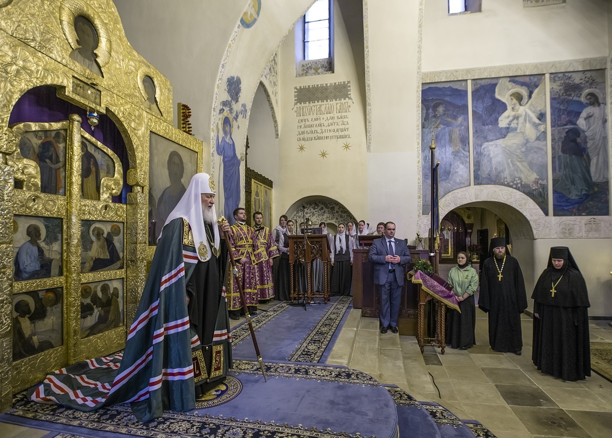 Вечером 24 апреля 2019 года Святейший Патриарх Московский и всея Руси Кирилл посетил ставропигиальный женский монастырь Марфо-Мариинскую обитель милосердия. В Покровском соборе обители Предстоятель Русской Православной Церкви принял участие в богослужении в канун Великого Четверга.