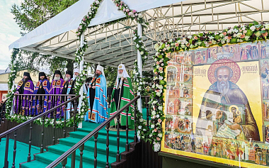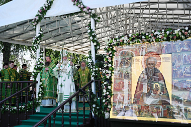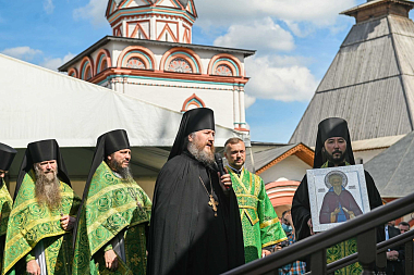 По окончании Литургии Святейший Владыка совершил славление и молитву преподобному Савве Сторожевскому у иконы святого.