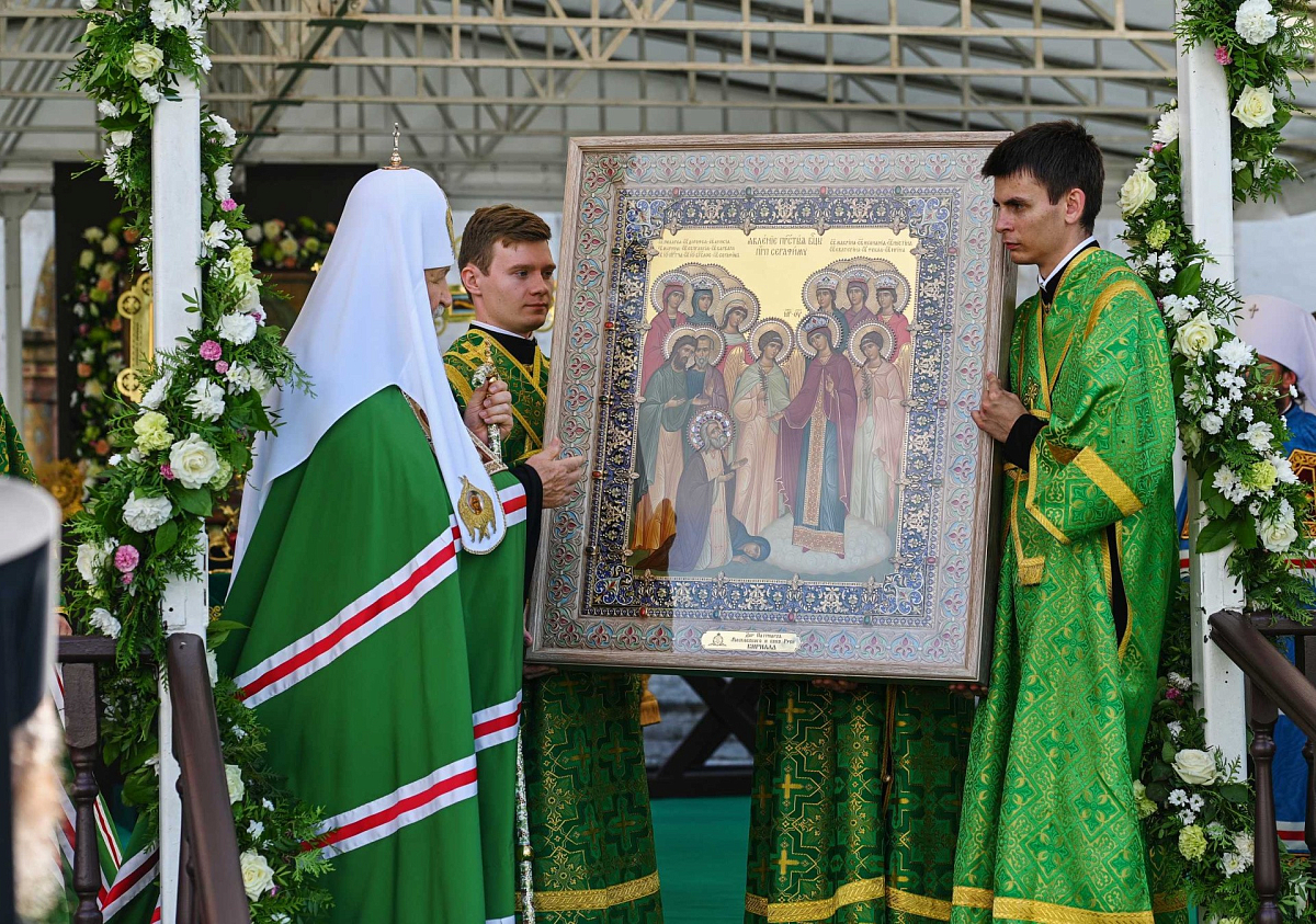 В дар обители Святейший Патриарх Кирилл передал икону явления Пресвятой Богородицы преподобному Серафиму Саровскому, а каждому насельнику монастыря – сборник своих проповедей.