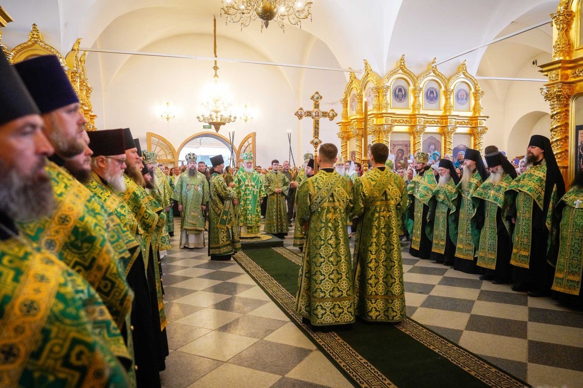 Его Святейшеству сослужили: митрополит Воскресенский Дионисий, управляющий делами Московской Патриархии; митрополит Каширский Феогност, председатель Синодального отдела по монастырям и монашеству; митрополит Архангельский и Холмогорский Корнилий; епископ Нарьян-Марский и Мезенский Иаков; епископ Котласский и Вельский Василий; епископ Плесецкий и Каргопольский Александр; епископ Озерский Порфирий, наместник Соловецкого монастыря; архимандрит Ианнуарий (Недачин), благочинный обители; архимандрит Алексий (Туриков), личный секретарь Святейшего Патриарха Кирилла; братия монастыря в священном сане.