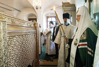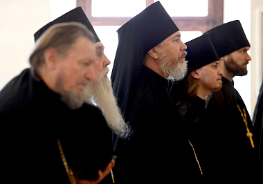 Его Святейшеству сослужили: митрополит Воскресенский Дионисий, управляющий делами Московской Патриархии, первый викарий Патриарха Московского и всея Руси по г. Москве, наместник Новоспасского ставропигиального монастыря; митрополит Каширский Феогност, председатель Синодального отдела по монастырям и монашеству, наместник Донского ставропигиального монастыря; протопресвитер Владимир Диваков, секретарь Патриарха Московского и всея Руси по г. Москве; архимандрит Алексий (Туриков), личный секретарь Святейшего Патриарха Кирилла; насельники Донской обители в священном сане; московское духовенство.