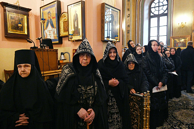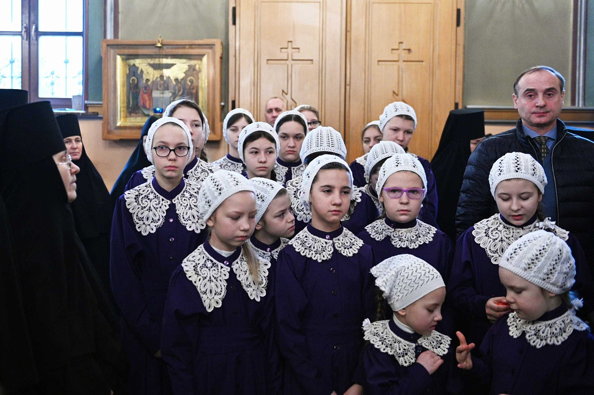 Среди молившихся в храме были настоятельница Покровского ставропигиального монастыря игумения Феофания (Мискина), насельницы Покровской обители и воспитанницы монастырского приюта для девочек.
