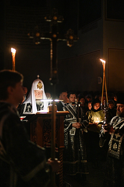 Вечером 5 марта 2020 года, в четверг первой седмицы Великого поста, Святейший Патриарх Московский и всея Руси Кирилл совершил великое повечерие с чтением Великого покаянного канона прп. Андрея Критского в Донском ставропигиальном мужском монастыре.