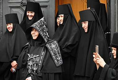 Среди молившихся в храме были настоятельница Покровского ставропигиального монастыря игумения Феофания (Мискина), настоятельница Патриаршего подворья Пюхтицкого Успенского ставропигиального женского монастыря в г. Москве игумения Филарета (Смирнова), насельницы Покровской обители и воспитанницы монастырского приюта для девочек.
