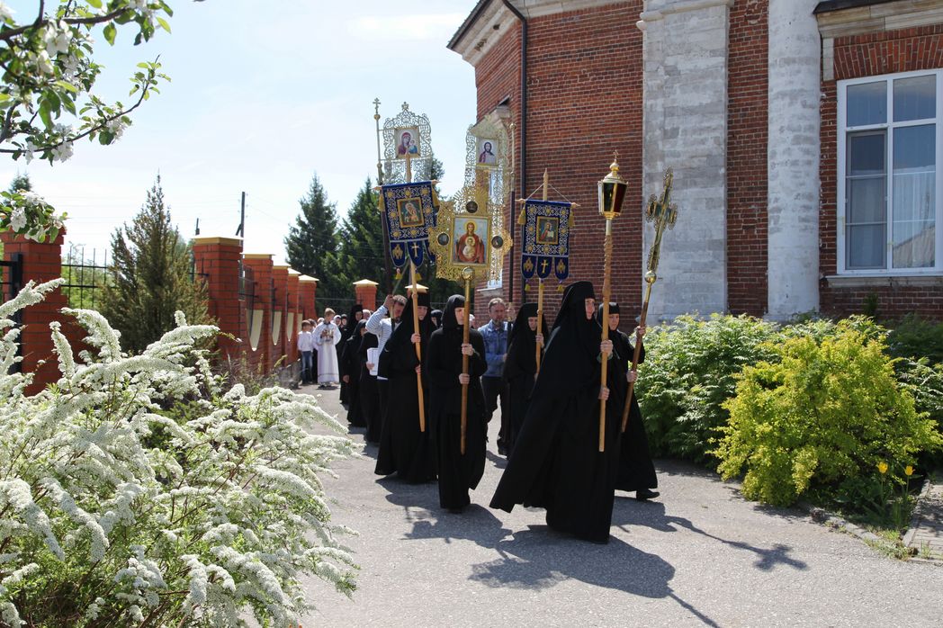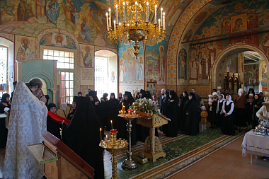 За Божественной Литургией молились игумения Неонилла (Фролова) с сестрами и воспитанницами, игумения Антония (Минина), настоятельница Свято-Троицкого Александро-Невского ставропигиального женского монастыря в с. Акатово Клинского района Московской области, многочисленные прихожане, паломники и гости обители.
